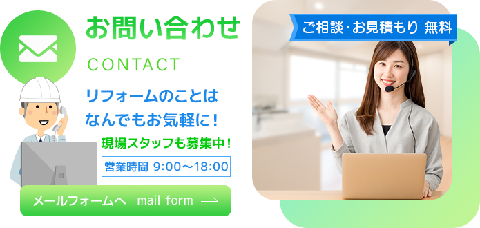 ご相談やお見積もりは無料で承っております。神奈川県平塚市をはじめ各地でお風呂・トイレ・キッチンリフォームなどのご依頼をお考えの方は、どうぞお気軽にご連絡ください。